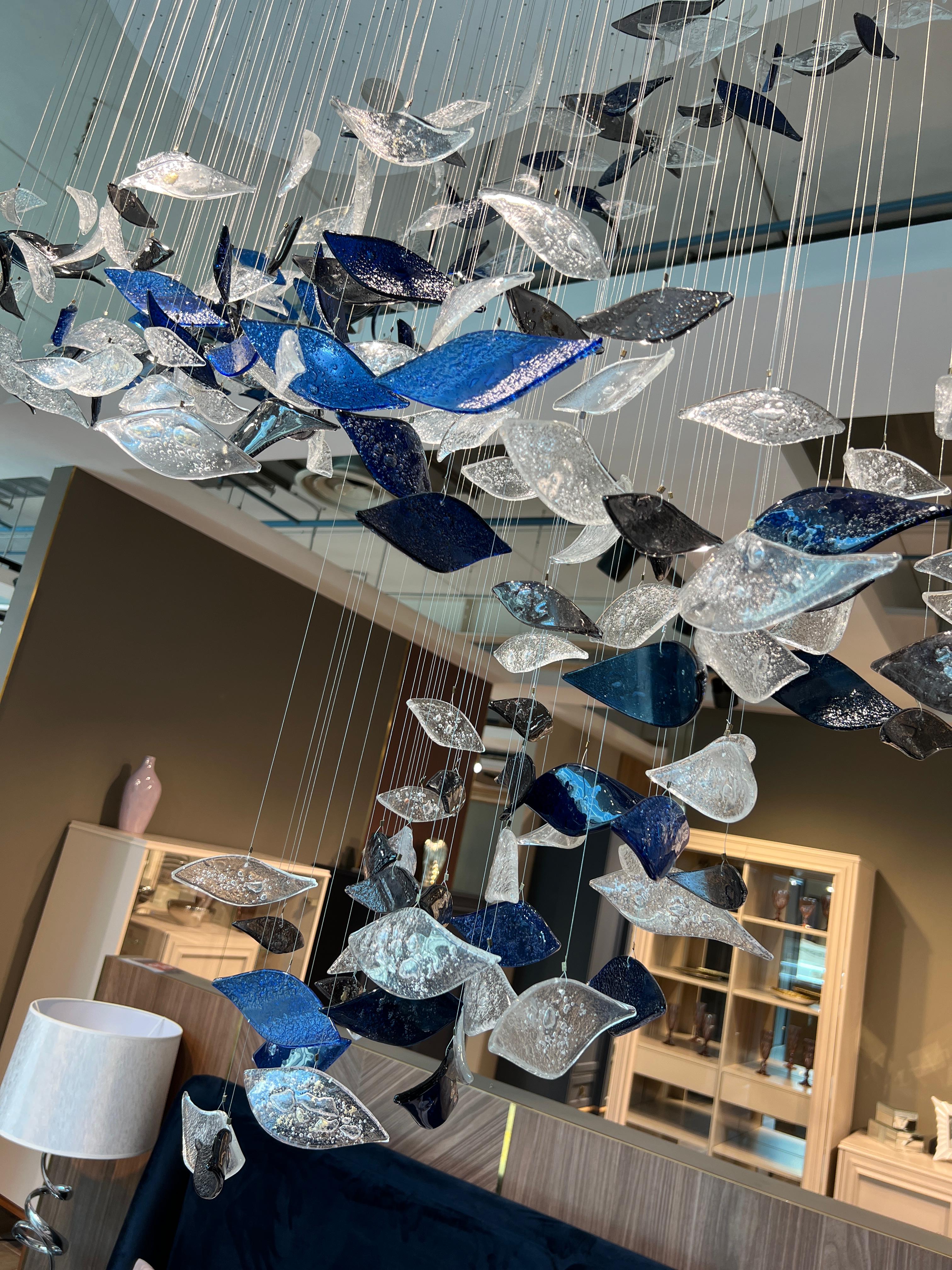 Люстра выполнена из молированного стекла с большим количеством подвесов ( 350 шт)