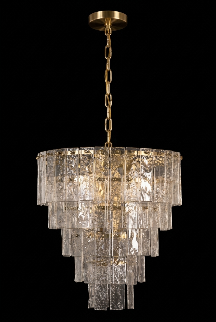Уникальный дизайн: Сочетание классической формы и современной фактуры стекла делают эту люстру универсальной для различных стилей интерьера, от минимализма до ар-деко.